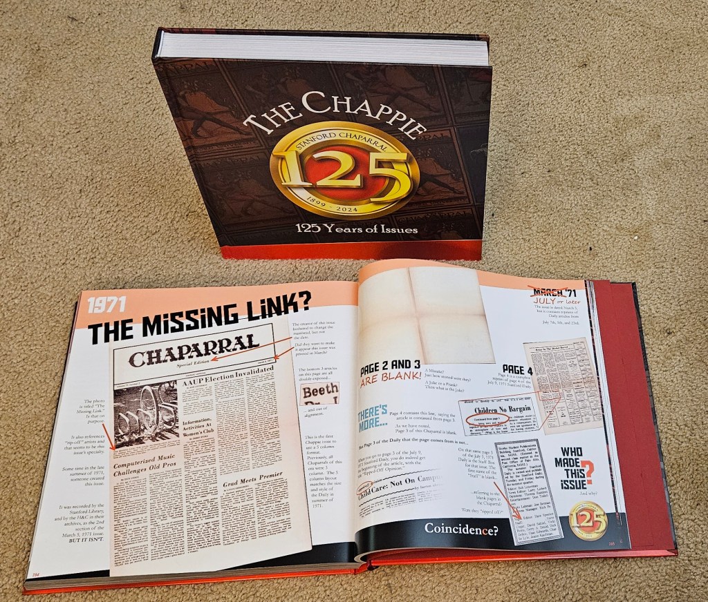 My own wonderment at this particular vista is a feeling somewhat beyond description. Before last year I had not written any book, now I will have produced two. And while I would have believed that I might one day produce a coffee table book about my beloved Stanford Chaparral, I would have been hard pressed to believe I would write a book such as this one. I would have been even more incredulous at the idea that I find possible clues to a crime in actual Chaparral and Daily issues, and even completely unbelieving that I would reprint those key clues in that huge Chappie anniversary book.
