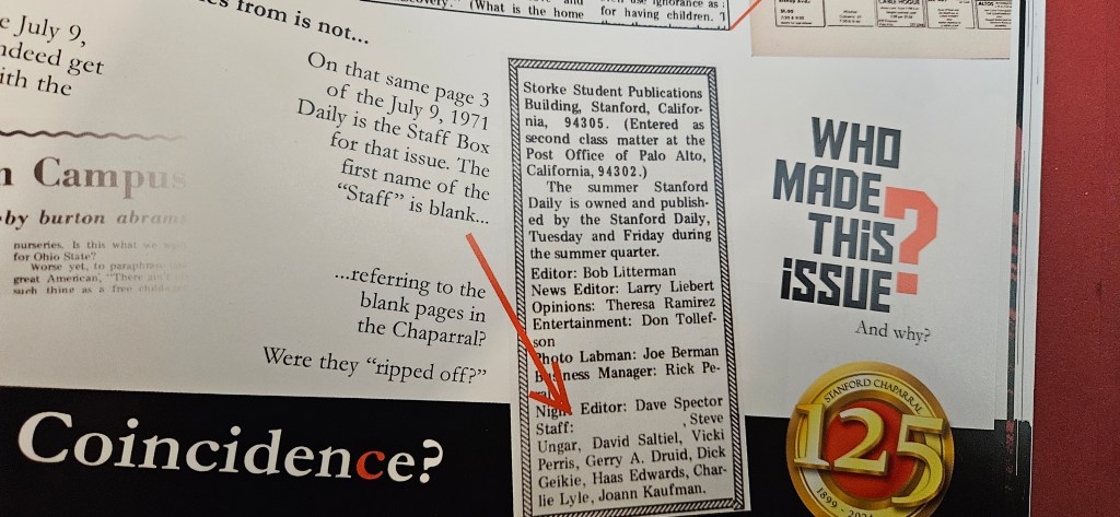 So yes, I knew Richard Gaikowski, and that started me down this path, but it was only because of my life experiences that I could recognize what I was seeing. And only because I was a Chappie that I bumbled upon the key discoveries. Who would believe that through the Chaparral would be the path that might solve this mystery? And that the Stanford Daily, the student newspaper of Stanford University, was also central to this tale? It’s quite a bizarre concept to get one’s head around. The long running rivalry and sometimes contentious relationship between these two Stanford student publications would make this story comical, if not for the seriousness of the subject at hand.